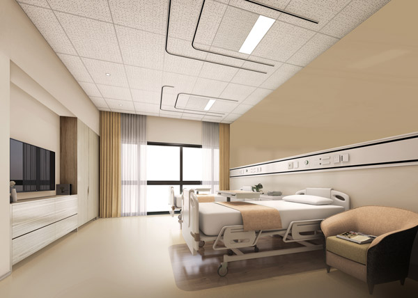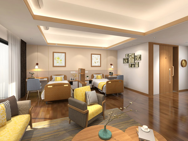 Non-hospital-like designs along with outdoor gardens create a comfortable healing environment. A rehabilitation garden is specially designed for the elderly to stay close to nature and perform rehabilitation activities while also offering a relaxed and comfortable communal space to aid in healing the body and mind.